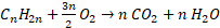 W tym zadaniu równania spalania alkenu CnH2n (spalania całkowitego i niecałkowitego).