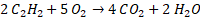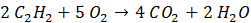 Na początku zapisz równanie reakcji spalania acetylenu. Wiedząc, że 2 mole acetylenu reaguje z 5 molami tlenu: