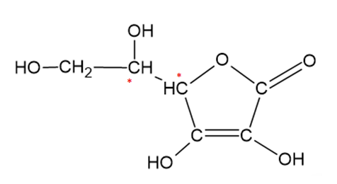 Kwas askorbinowy jest związkiem optycznie czynnym, ponieważ posiada w cząsteczce dwa asymetryczne atomy węgla.