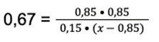 — końcową liczbę moli: 0,85 dla estru i alkoholu, 0,15 dla kwasu i x – 0,85 dla alkoholu.