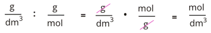 stężenie w g/dm3 : masa molowa w g/mol = stężenie w mol/dm3