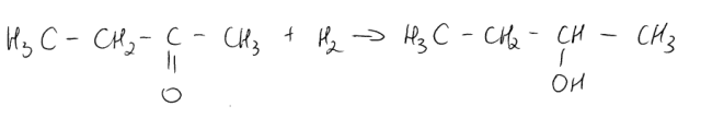 Atomy wodoru podłączające się do węgla i do atomu tlenu przy grupie karbonylowej mogą to zrobić na dwa sposoby względem grupy metylowej i etylowej podłączonej do tego atomu węgla. Powstaje więc jednakowa ilościowo mieszanina obu izomerów. Ponieważ atom węgla przy którym znajduje się po uwodornieniu grupa hydroksylowa jest połączony z 4 różnymi podstawnikami, będzie wykazywał chiralność.
