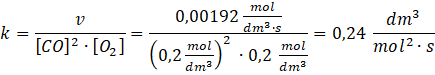 W tym zadaniu oblicz stałą szybkości reakcji 2CO + O2 2CO2.