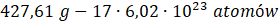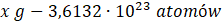 Wszystkich atomów w cząsteczce Ga2(SO4)3 jest 17, więc w 1 molu (427,61 g) jest 17 ∙ 6,02 ∙ 1023 atomów. W x g jest 3,6132 ∙ 1023 atomów to: