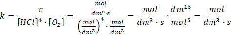 W tym zadaniu podaj wymiar stałej szybkości reakcji spalania HCl w jednostkach SI.