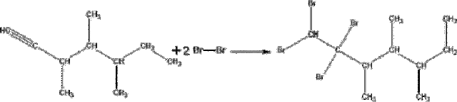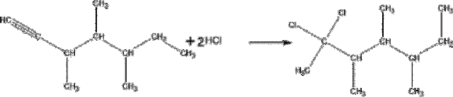 Przedstawione reakcje to reakcje addycji. Alkiny mogą przyłączyć do dwóch cząsteczek halogenów, halogenków, czy wodoru, tracąc przy tym swój nienasycony charakter. Gdy przyłączają jedną cząsteczkę halogenów, halogenków, czy wodoru to będą mieć dalej charakter nienasycony (jedno wiązanie podwójne).