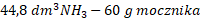 Z 2 moli amoniaku (2∙22,4 dm3) powstaje 1 mol (60 g) mocznika, więc z 35 dm3 powinno powstać: