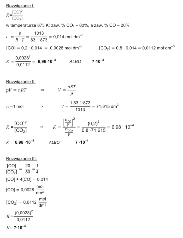 Oblicz wartość stężeniowej stałej równowagi opisanej przemiany.