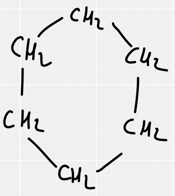 | Wszystkie atomy węgla mają hybrydyzację sp3. Nie odbarwia wody bromowej i zakwaszonego roztworu KMnO4. W cząsteczce występują wyłącznie wiązania typu σ .Nie wykazuje izomerii cis-trans (Z, E). Nie ulega reakcji addycji. |