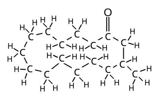 Narysuj wzór strukturalny muskonu. Grupa karbonylowa wchodzi w skład pierścienia, a grupa metylowa przyłączona jest do atomu węgla C3.