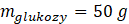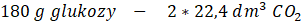 Powstałym gazem jest dwutlenek węgla, a zatem obliczmy masę glukozy: