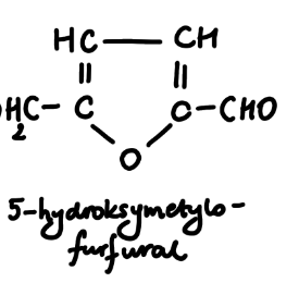 W tym zadaniu należy zapisać wzór półstrukturalny 5-hydroksymetylofurfuralu.