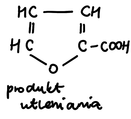 W tym zadaniu należy zapisać wzory półstrukturalne produktów reakcji redukcji oraz utleniania furfuralu.