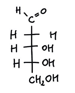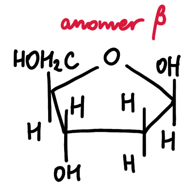 Zgodnie z opisem w poleceniu D-ryboza ma wzór analogiczny do 2-deoksyrybozy z tą różnicą, że w przypadku 2-deoksyrybozy przy drugim atomie węgla utracił tlen na rzecz ugrupowania C-H.