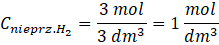Na początku oblicz stężenia reagentów i nieprzereagowanego wodoru: