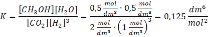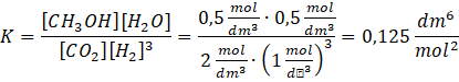 | Crównowagowe [mol/dm3] | 2,5-x | 1 | x | x |