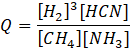 Q to iloczyn reakcji, czyli stosunek stężeń produktów do substratów podniesionych do potęg, które stanowią współczynniki stechiometryczne. Stężenia są podane w dowolnym