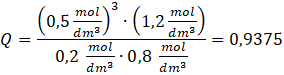 Jeśli Q>K reakcja zajdzie w lewo, jeśli Q