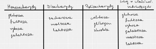 W tym zadaniu musisz przyporządkować nazwy sacharydów do odpowiednich grup umieszczonych w tabeli.