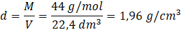 W tym zadaniu oblicz gęstość gazu o masie 44 g/mol w warunkach normalnych.