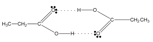 C3H7CHO jest aldehydem i nie tworzy wiązań wodorowych, ponieważ wodór nie jest połączony z pierwiastkiem silnie elektroujemnym. Stąd niska temperatura wrzenia. C2H5COOH i C4H9OH tworzą wiązania wodorowe, ale alkohol tworzy słabsze wiązania wodorowe.