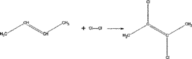 Reakcja addycji chloru do alkenów polega na przyłączeniu tego halogenku do wiązania nienasyconego. Produktem jest halogenoalkan.