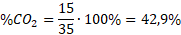 Łącznie powstaje 35 moli gazów, więc zawartość procentową każdego z nich można obliczyć, dzieląc liczbę moli danego gazu przez łączną liczbę moli gazów: