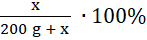 Zapisujemy wzór na stężenie procentowe, podstawiając x jako masę substancji rozpuszczonej, którą dodajemy. Ponieważ dodajemy coś do roztworu, będzie się zwiększać jego całkowita masa, więc ta sama zmienna x zostaje również dodana do mianownika (masy roztworu). Rozwiązujemy równanie, wyliczając x i otrzymujemy odpowiedź.