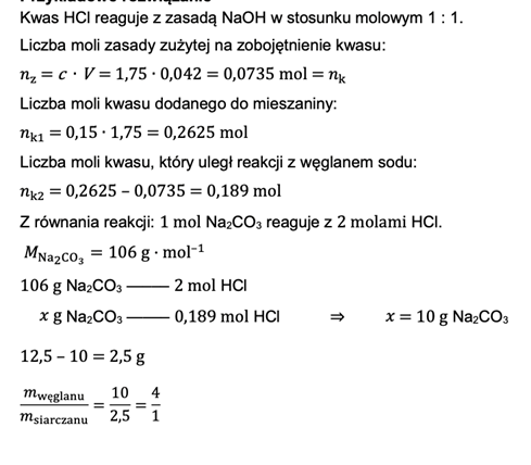 Rozwiązywanie takich zadań zawsze zaczyna się od zapisania i zbilansowania równania reakcji. Następnie wszystkie dane należy przeliczyć na liczbę moli, niezależnie od tego, czy podane są masy, objętości czy stężenia roztworów. Kolejnym krokiem jest porównanie stosunku moli reagentów z proporcjami wynikającymi z równania reakcji. Ten substrat, którego w stosunku do drugiego jest za mało, jest substratem ograniczającym.