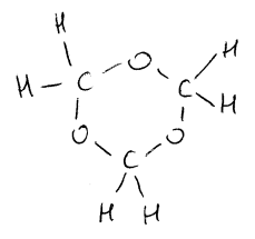 Podwójne wiązania łączące atomy węgla i tlenu ulegają zerwaniu i tlen łączy się z dwoma atomami węgla. Aby każde wiązanie było pomiędzy dwoma atomami zamykamy łańcuch w pierścień, otrzymując trioksan.