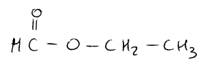 LW pierwszej kolejności liczymy, jaka ilość (w gramach) NaOH przereagowała z estrem. Następnie podstawiamy tę wartość do proporcji, rozwiązując równanie odpowiadające masie molowej estru. Z masy molowej należy empirycznie wyznaczyć wzór, odejmując od niej masę dwóch tlenów i sprawdzając, ile atomów węgla o można jeszcze „zmieścić” w pozostałej masie. Wiedząc, że alkohol ma dłuższy łańcuch niż kwas zapisujemy wzór metynianu etylu.
