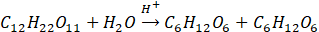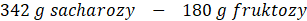 Z równanie reakcji wiemy, że 1 mol sacharozy ulega reakcji, dając 1 mol fruktozy oraz 1 mol glukozy: