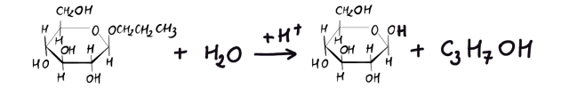 W wyniku hydrolizy glukopiranozydu propylu powstaje monosacharyd (glukoza) oraz alkohol (propanol).