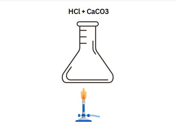 3. Do gorącego roztworu HCl dodaj 5 g CaCO3.