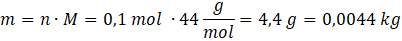 Oblicz masę propanu, znając liczbę moli oraz masę molową propanu odczytaną z układu okresowego pierwiastków. Zamieniamy jednostkę na kg, ponieważ w takiej jednostce jest podana gęstość.