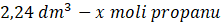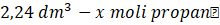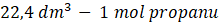 Oblicz liczbę moli propanu, wiedząc, że 1 mol gazu w warunkach normalnych zajmuje objętość 22,4 dm3:
