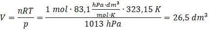Oblicz temperaturę w kelwinach, wiedząc, że 0°C= 273,15 K. Z równania Clapeyrona wyznacz objętość pary wodnej: