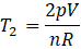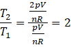 Skorzystaj z równania Clapeyrona. Wstaw do równania 2p zamiast p, a następnie podziel przez siebie otrzymane równanie z pierwotnym.
