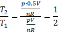 Skorzystaj z równania Clapeyrona. Wstaw do równania 0,5V zamiast V, a następnie podziel przez siebie otrzymane równanie z pierwotnym.