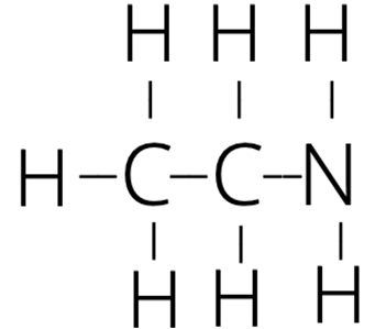 Przedstaw wzór związku, w którym będą dwa atomy węgla, jeden atom azotu i atomy wodoru. Pomiędzy atomami węgla i azotu umieść wiązanie pojedyncze.