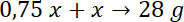 Zgodnie z prawem zachowania masy, masa substratów reakcji chemicznej musi być równa masie otrzymanych produktów. Jeśli produktem reakcji było 28 g siarczku magnezu, oznacza to, że wspólna masa siarki i magnezu również musiała wynosić 28 g. Na tej podstawie ułóż równanie, oznaczając przez x masę siarki, a przez 0,75 x masę magnezu (gdyż w zadaniu podano takie zależności).