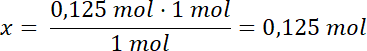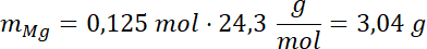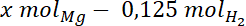 Z proporcji oblicz, ile moli magnezu zostało użyte w reakcji, aby powstało 0,125 moli wodoru:
