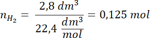 Po przeliczeniu objętości wydzielonego wodoru na liczbę jego moli można wyznaczyć liczbę moli metalu, który przereagował. Różnica mas mieszaniny oraz jednego z metali wskazuje na masę drugiego metalu obecnego w mieszaninie.