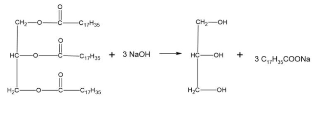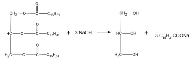 Reakcja zmydlania jest to hydroliza zasadowa tłuszczów, w której produktami są glicerol i sól kwasu karboksylowego, czyli mydło.