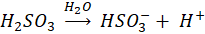 Drobiny uszeregowane zgodnie z malejącym stężeniem w roztworze: H2SO3, H+, HSO3-, SO32-..