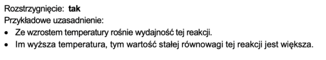 Wraz ze wzrostem temperatury w reaktorze, rośnie stała równowagi opisanej reakcji.