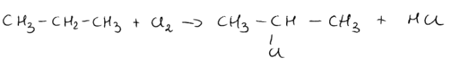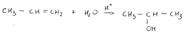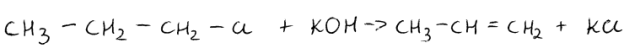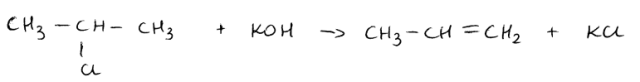 Wiedząc, od jakiego związku zaczynamy, określamy jego dwa produkty jako izomery różniące się tym, do którego atomu węgla przyłączył się chlor. Następnie każdy z nich ulega reakcji z KOH w etanolu, powodując odwodornienie tych związków do tego samego alkenu. Alken ten reaguje z wodą, przyłączając ją zgodnie z regułą Markownikowa i tworzy się propan-2-ol.