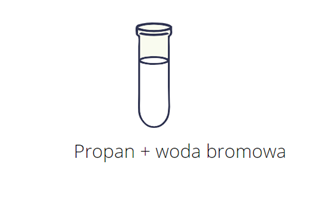 Wykonanie: Do probówki z propanem oraz do probówki z propenem dodaje wody bromowej.