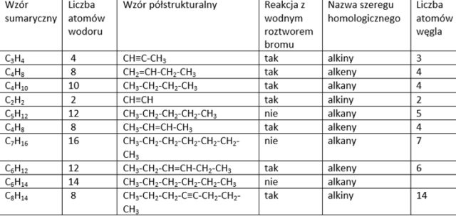 Wzór ogólny alkinów: CnH2n-2.