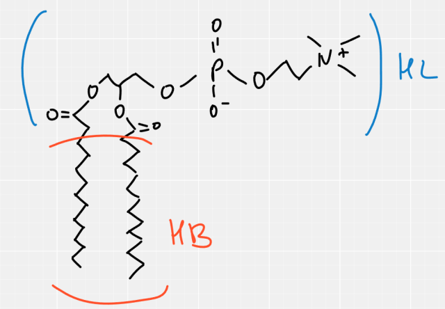 W tym zadaniu musisz zaznaczyć fragment hydrofobowy i oznaczyć go jako HB oraz fragment hydrofilowy oznaczyć HL. Następnie uzupełnij poniższy tekst opisujący strukturę liposomów, podkreślając jedno z proponowanych określeń.